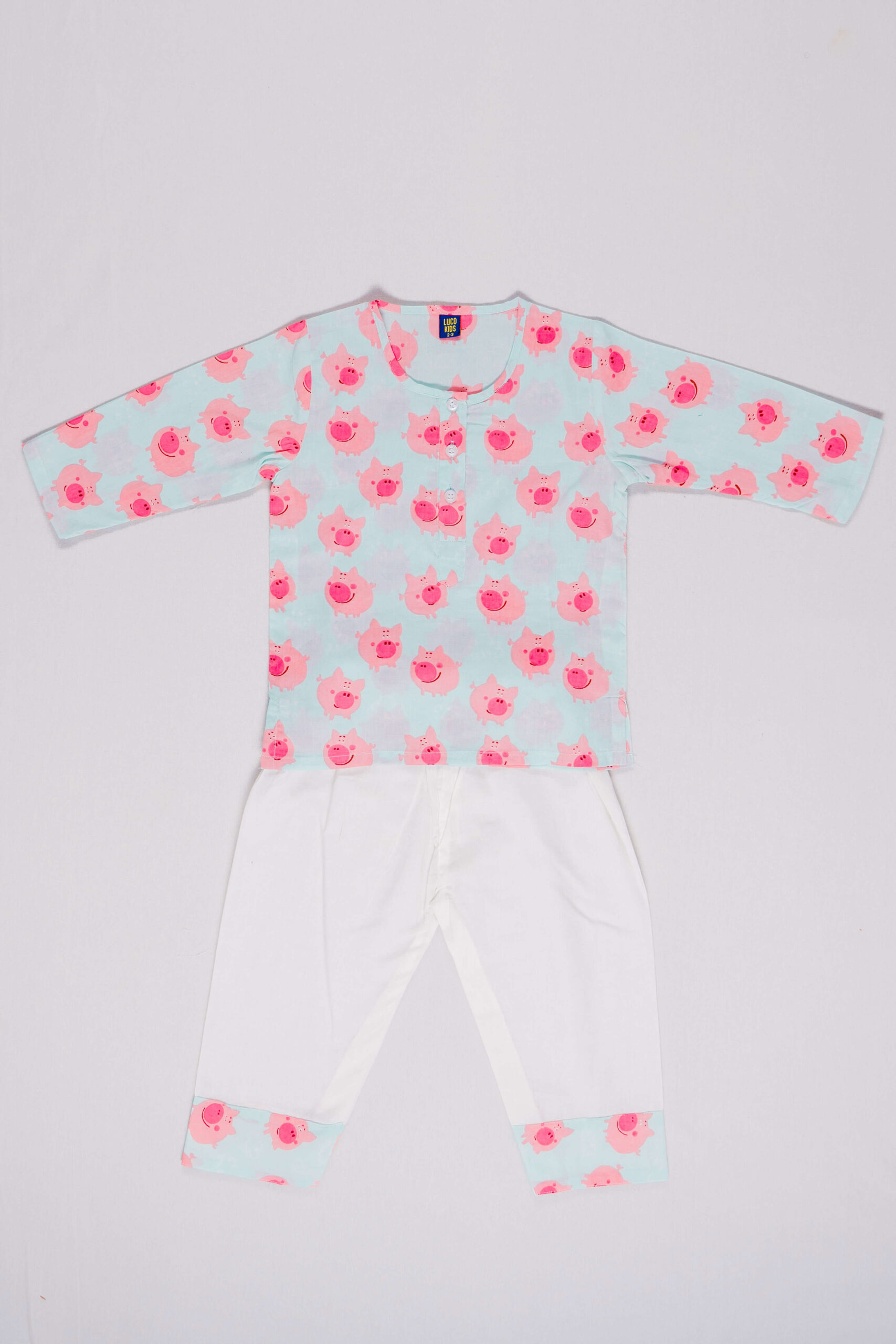 A magical bedtime adventure with our delightful kids’ nightsuit featuring charming piglet designs! Made from 100% cotton, these sleepwear sets are extra soft, ensuring a cozy and comfortable sleep for your little ones.Whether they’re dreaming of flying pigs or counting stars, our pajama sets are here to make bedtime fun and cozy every night!