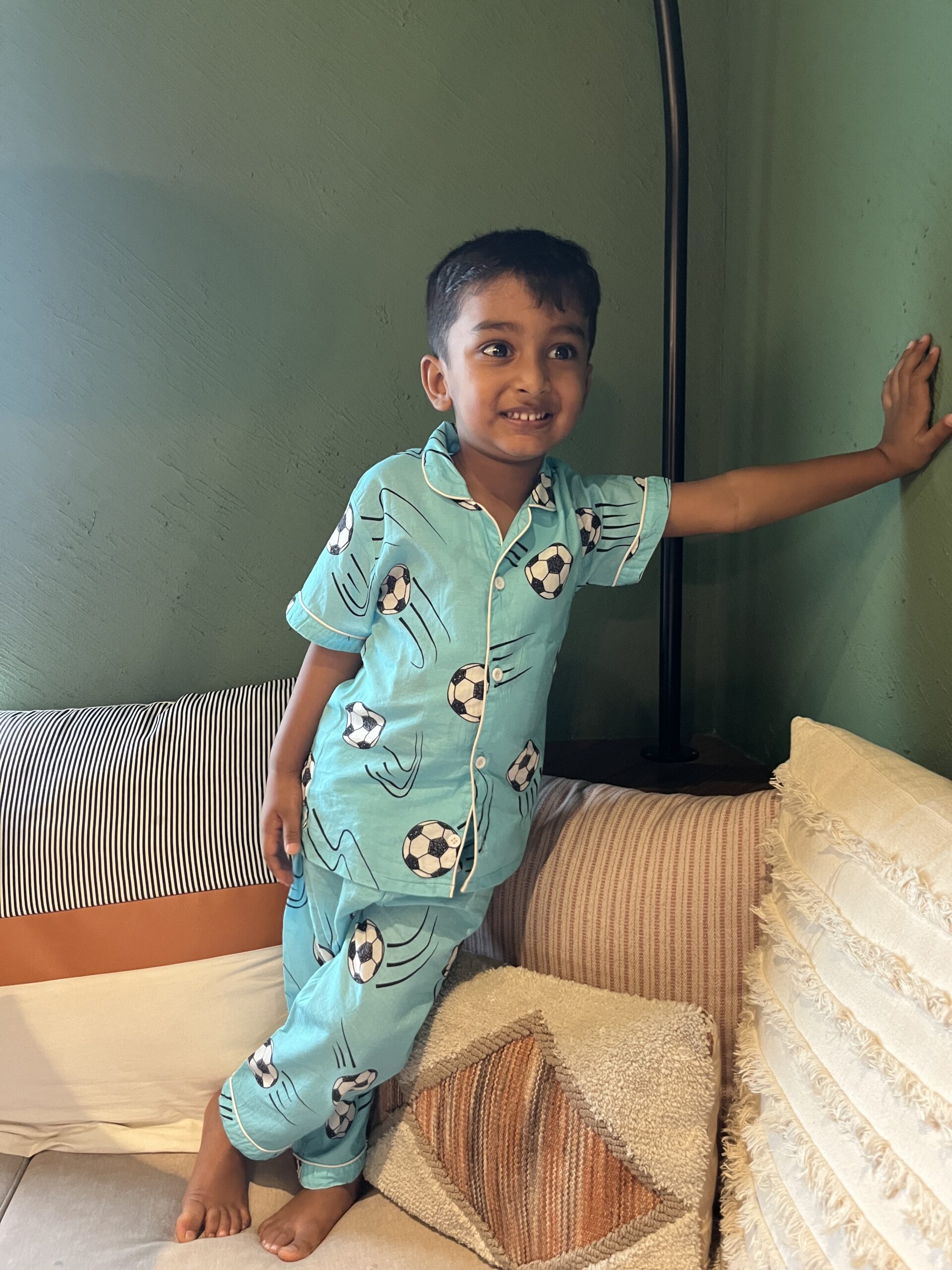 Score sweet dreams in style! This comfy blue night suit, covered in a playful football print, is perfect for your little sports champ. Made from 100% extremely soft cotton, it’s gentle on the skin and breathable for all-night comfort. With a relaxed fit and fun design, bedtime just became their new favorite game time!
